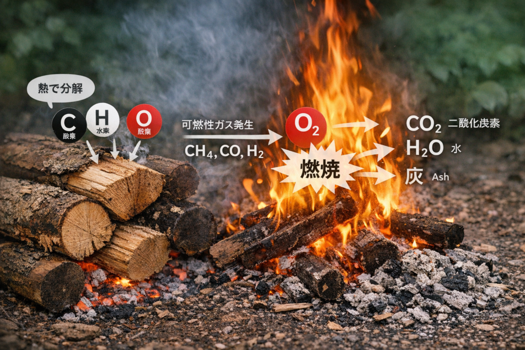 - 燃焼とは何か?木が燃える仕組みを元素記号(C・H・O)でわかりやすく解説