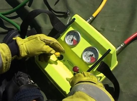 • 1枚使用時:デュアルコントローラーの片側バルブをゆっくり開き、空気を送り始めます。バッグが安定して膨張するよう、ゆっくりと操作するのがポイントです。
