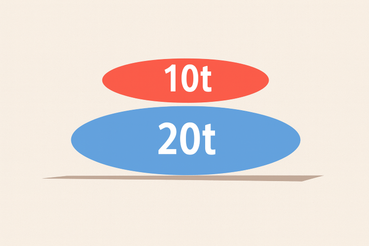 このとき、下に20トン用、上に10トン用を配置する必要があります。