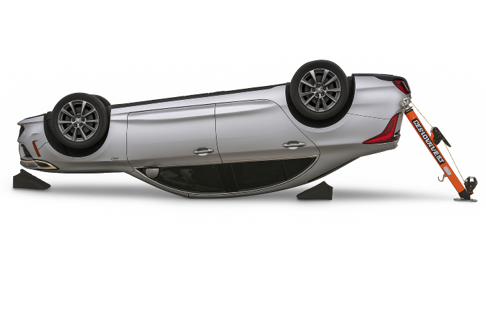 車両が転覆する際、動的荷重分布が変化し、特にエンジンの重量や重心が車両の動きに影響を与えます。エンジンが前部にある車両では、フロントエンドが重く、リアが軽くなるため、救助活動中に車両の後部が突然持ち上がったり、横に傾くリスクが高くなります。このため、リアの安定化は特に重要です。具体的には、リアに追加のウェッジ(木製または金属製)やスティッキィージャックスのような高荷重耐性の安定化ツールを用いることで、後部が動かないように固定します。
