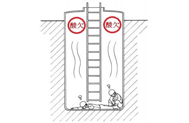 - 原因:換気不足や腐敗ガスにより、酸素濃度が21%未満に低下