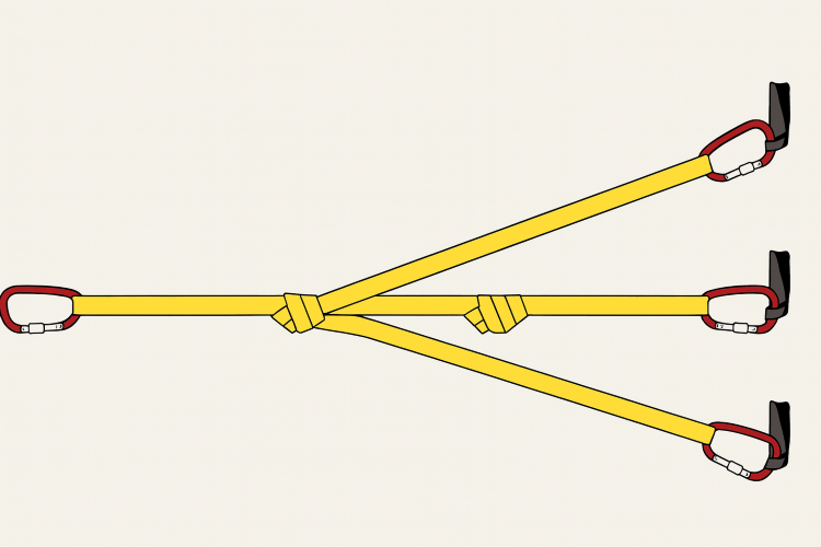 マルチポイントアンカーとは、複数の固定点(例えば、木や岩など)を利用して作成されるアンカーシステムのことを指します。このシステムは、一つの固定点だけでは十分な強度がない場合や、引っ張る力(プル)の方向が既存の固定点と一致しない時に特に有効です。